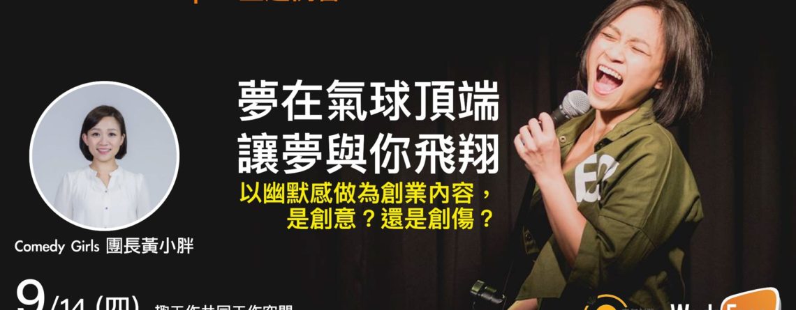 [活動]【9月14日第127場主題例會】夢在氣球頂端,讓夢與你飛翔 | Comedy Girls 團長黃小胖【WorkFace Taipei】