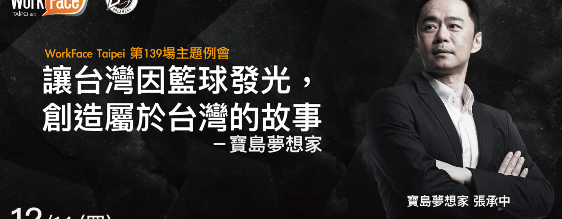 WorkFace Taipei 第 3 群組:運動、健身與健康維護,邀請到寶島夢想家球隊董事長張承中來分享由各領域的成功創業家,集結傳媒、體育、娛樂、政商人脈等元素而組成創新、踏實、熱忱及專業的團隊,期待透過寶島夢想家傳遞更多希望能量,為台灣籃球圈及下一代創造更好的生態。